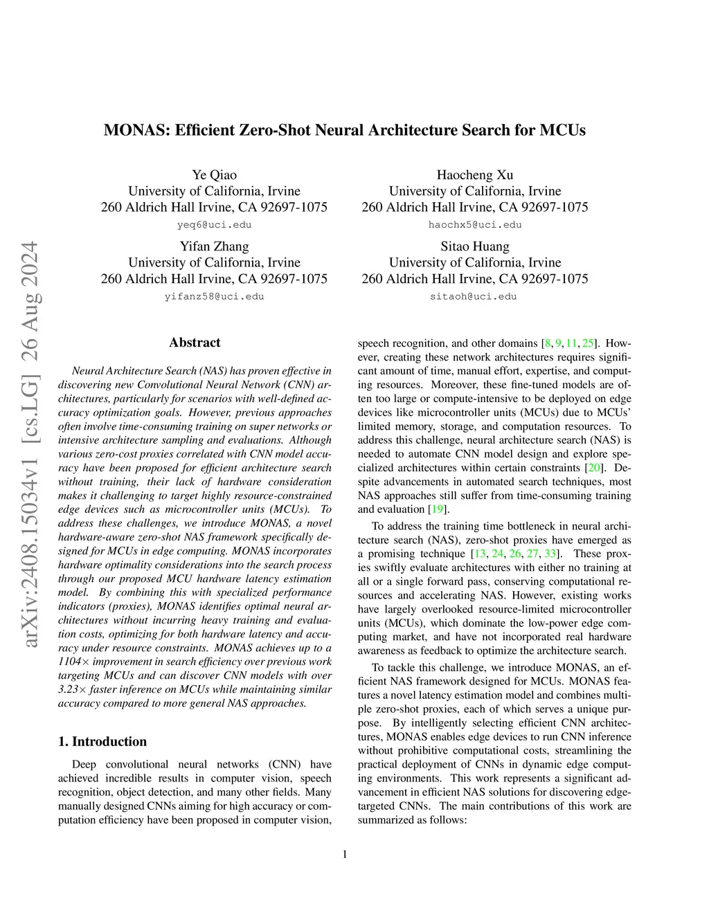 MONAS: Efficient Zero-Shot Neural Architecture Search for MCUs