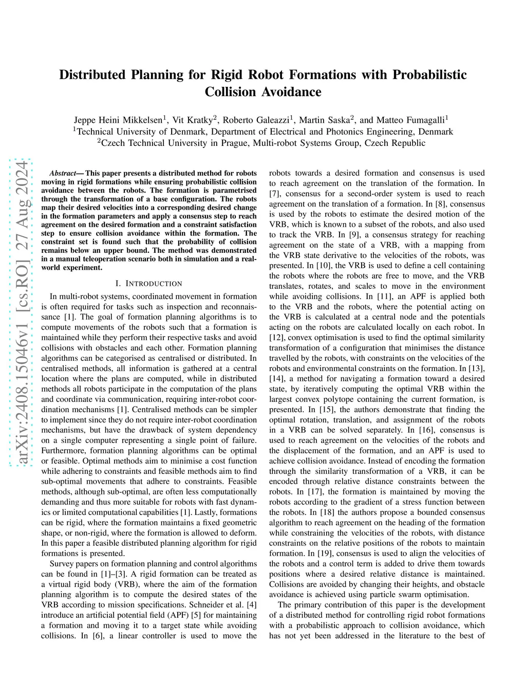 Distributed Planning for Rigid Robot Formations with Probabilistic