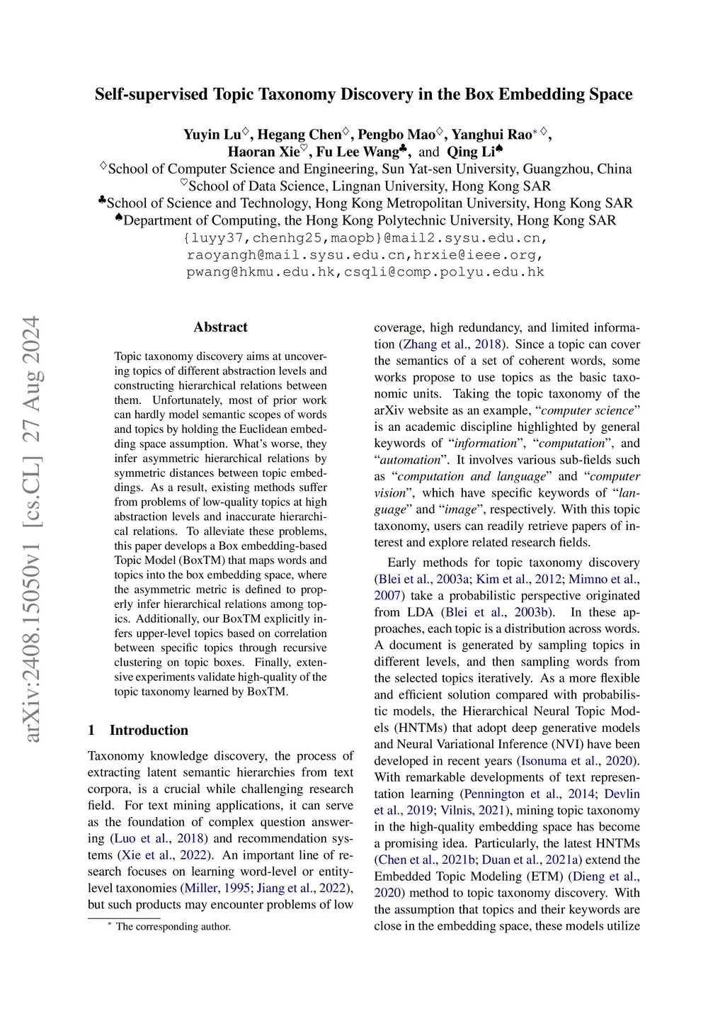 Self-supervised Topic Taxonomy Discovery in the Box Embedding Space