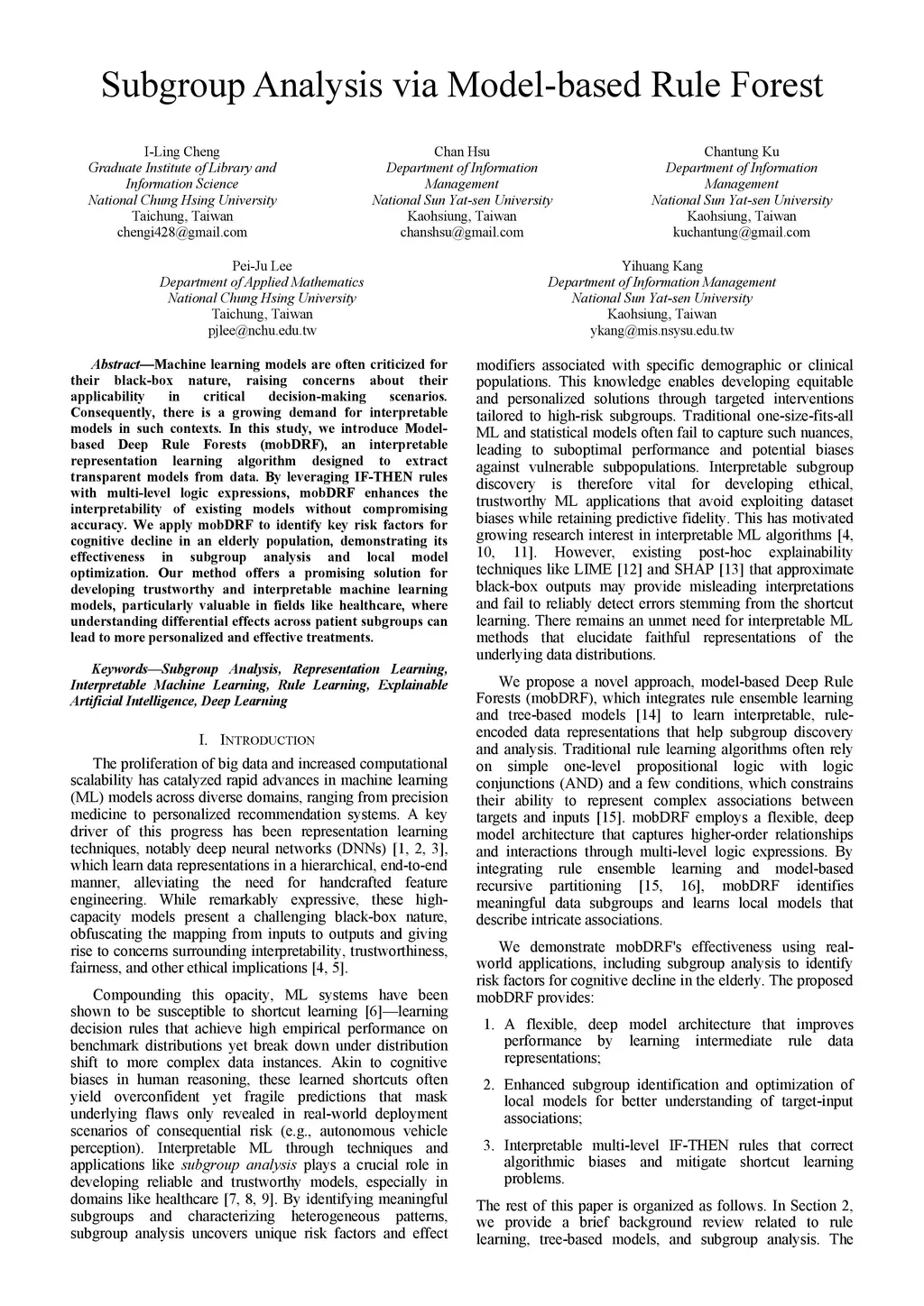 Machine learning models are often criticized for their black-box nature, raising concerns about their applicability in critical decision-making scenarios. Consequently, there is a growing demand for interpretable models in such contexts. In this study, we introduce Model-based Deep Rule Forests (mobDRF), an interpretable representation learning algorithm designed to extract transparent models from data. By leveraging IF-THEN rules with multi-level logic expressions, mobDRF enhances the interpretability of existing models without compromising accuracy. We apply mobDRF to identify key risk factors for cognitive decline in an elderly population, demonstrating its effectiveness in subgroup analysis and local model optimization. Our method offers a promising solution for developing trustworthy and interpretable machine learning models, particularly valuable in fields like healthcare, where understanding differential effects across patient subgroups can lead to more personalized and effective treatments.