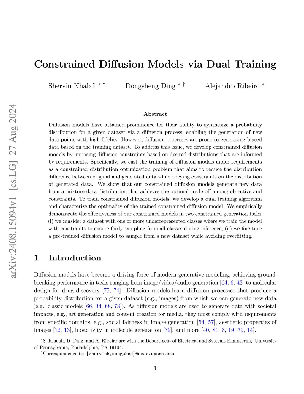 Constrained Diffusion Models via Dual Training
