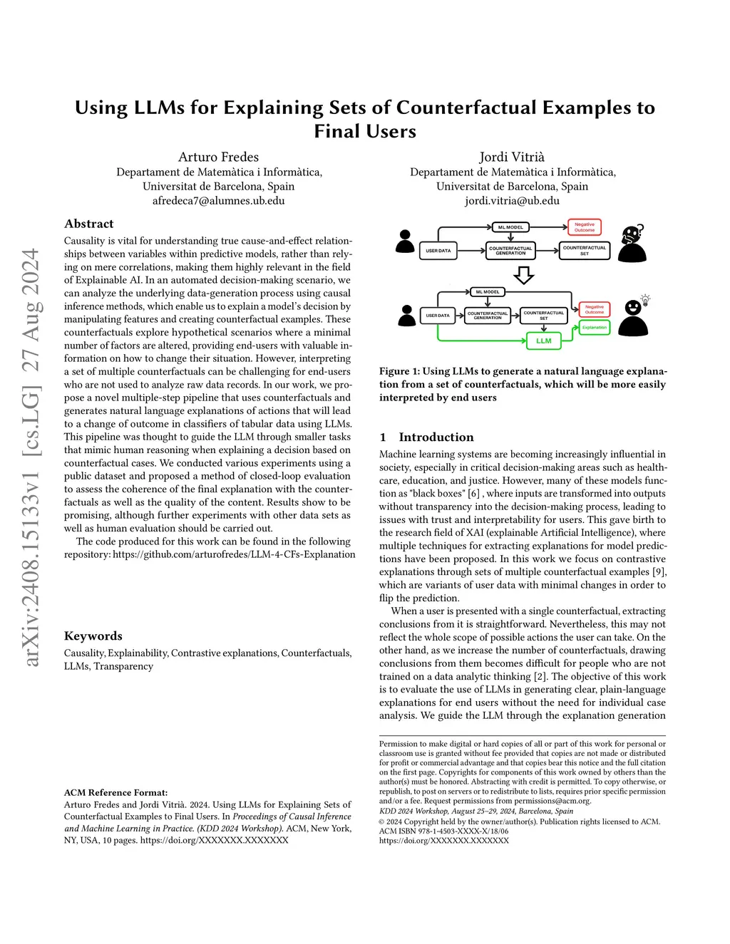 Using LLMs for Explaining Sets of Counterfactual Examples to Final Users