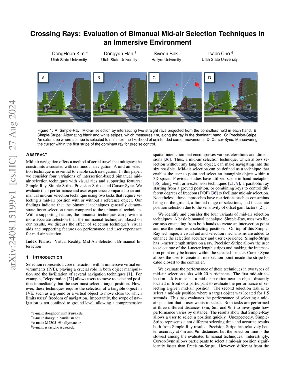 Crossing Rays: Evaluation of Bimanual Mid-air Selection Techniques in an