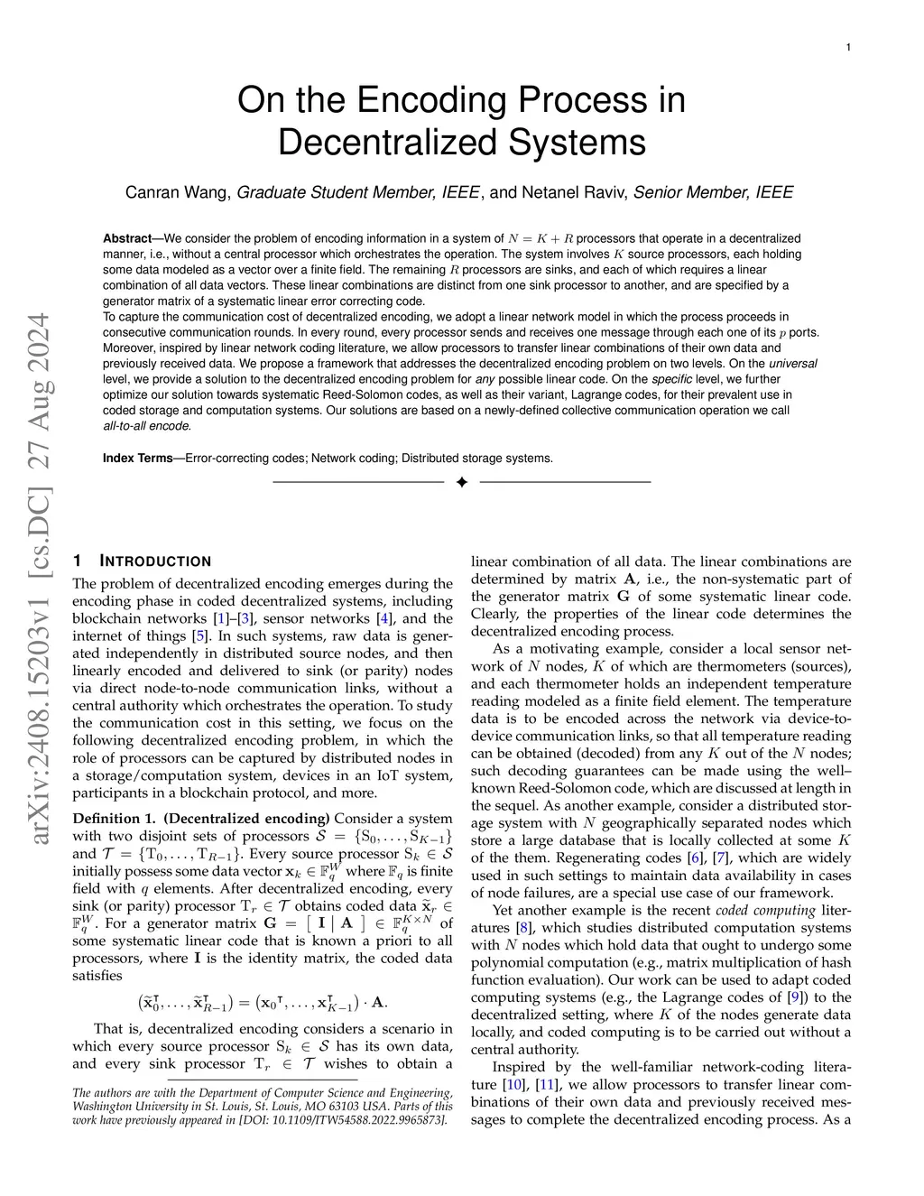 On the Encoding Process in Decentralized Systems