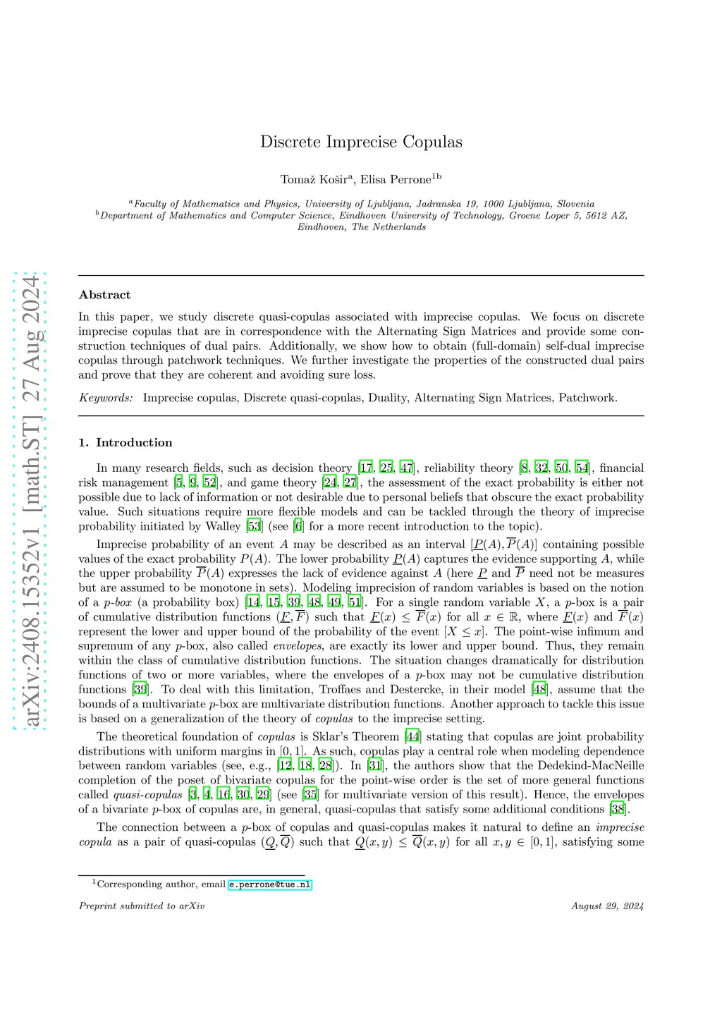 In this paper, we study discrete quasi-copulas associated with imprecise copulas. We focus on discrete imprecise copulas that are in correspondence with the Alternating Sign Matrices and provide some construction techniques of dual pairs. Additionally, we show how to obtain (full-domain) self-dual imprecise copulas through patchwork techniques. We further investigate the properties of the constructed dual pairs and prove that they are coherent and avoiding sure loss.