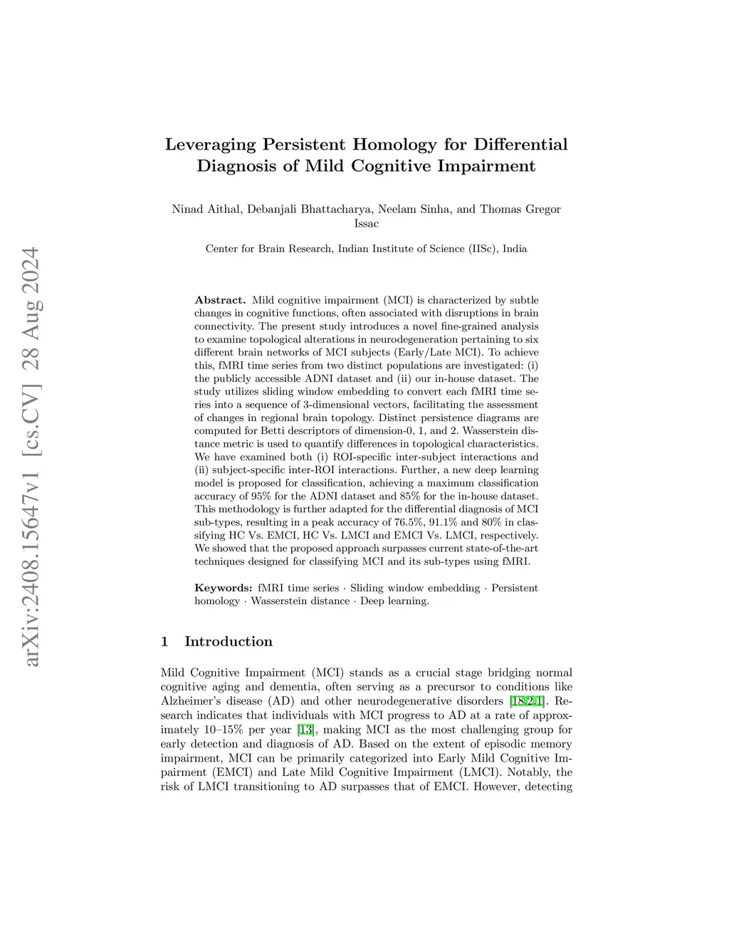 Leveraging Persistent Homology for Differential Diagnosis of Mild