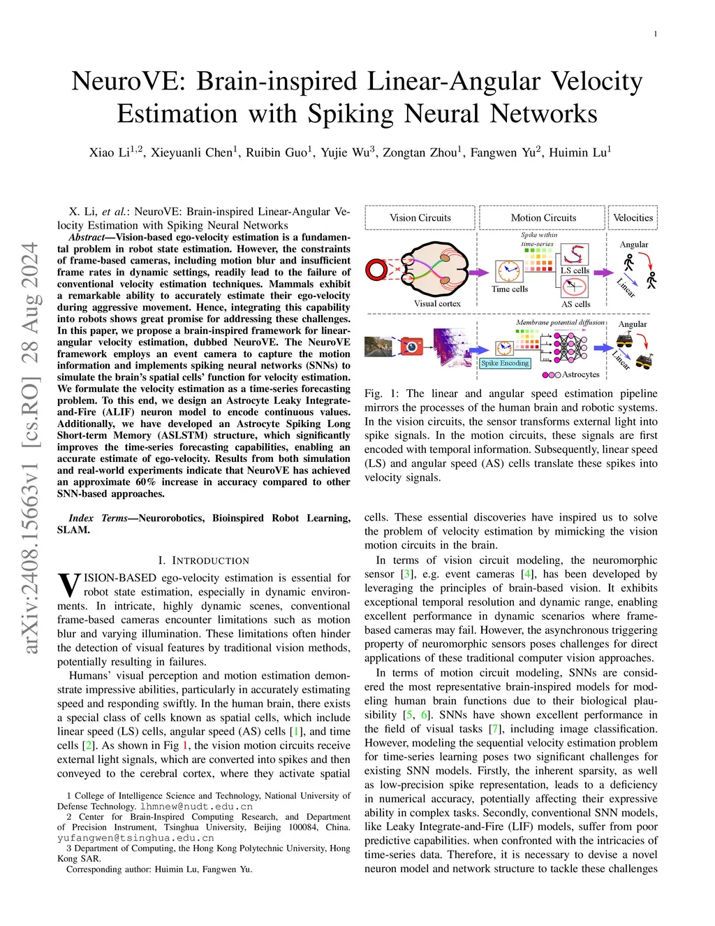 NeuroVE: Brain-inspired Linear-Angular Velocity Estimation with Spiking