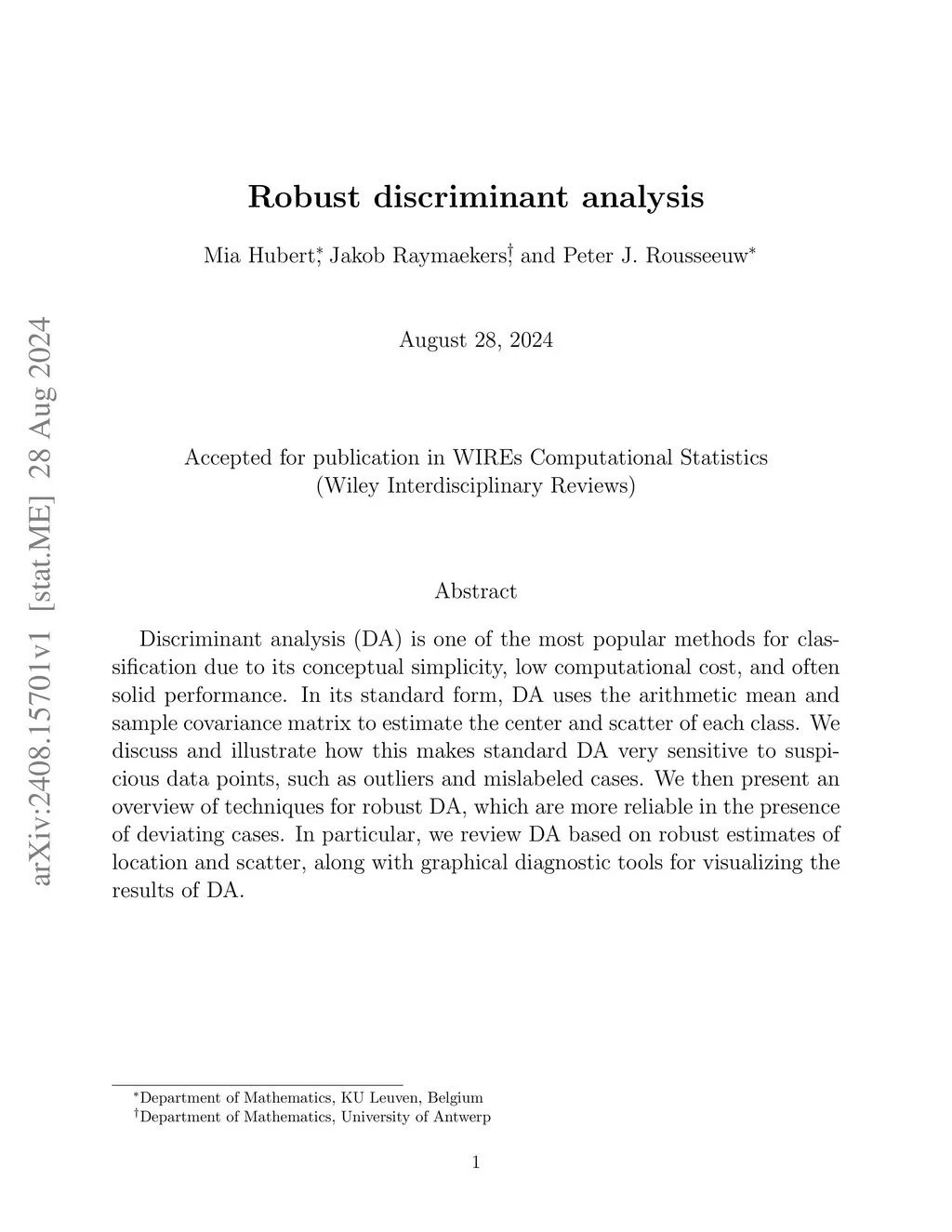 Discriminant analysis (DA) is one of the most popular methods for classification due to its conceptual simplicity, low computational cost, and often solid performance. In its standard form, DA uses the arithmetic mean and sample covariance matrix to estimate the center and scatter of each class. We discuss and illustrate how this makes standard DA very sensitive to suspicious data points, such as outliers and mislabeled cases. We then present an overview of techniques for robust DA, which are more reliable in the presence of deviating cases. In particular, we review DA based on robust estimates of location and scatter, along with graphical diagnostic tools for visualizing the results of DA.