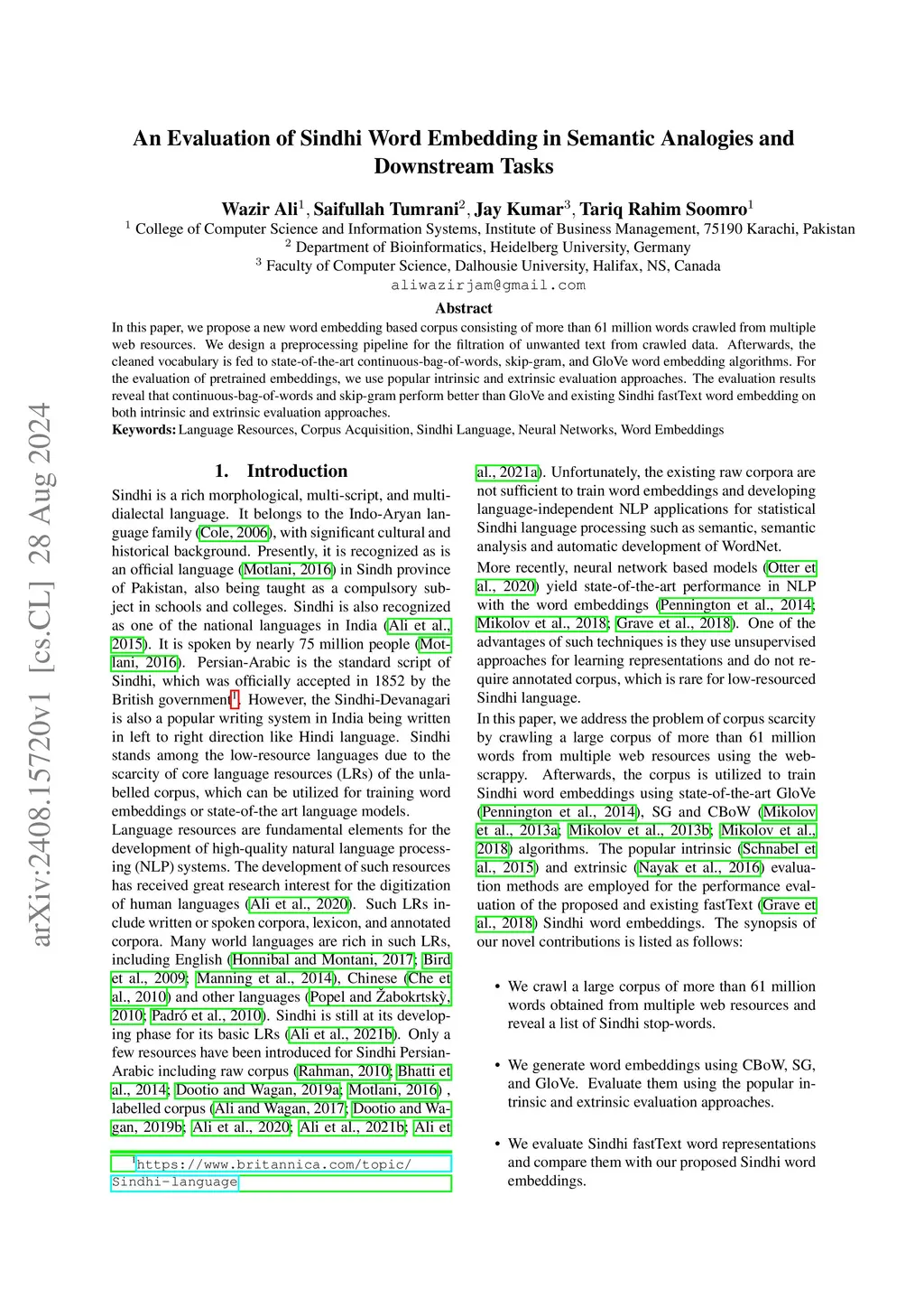 In this paper, we propose a new word embedding based corpus consisting of more than 61 million words crawled from multiple web resources. We design a preprocessing pipeline for the filtration of unwanted text from crawled data. Afterwards, the cleaned vocabulary is fed to state-of-the-art continuous-bag-of-words, skip-gram, and GloVe word embedding algorithms. For the evaluation of pretrained embeddings, we use popular intrinsic and extrinsic evaluation approaches. The evaluation results reveal that continuous-bag-of-words and skip-gram perform better than GloVe and existing Sindhi fastText word embedding on both intrinsic and extrinsic evaluation approaches