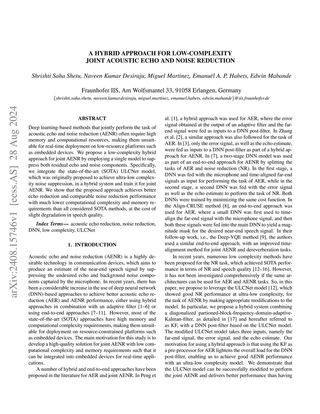 A Hybrid Approach for Low-Complexity Joint Acoustic Echo and Noise