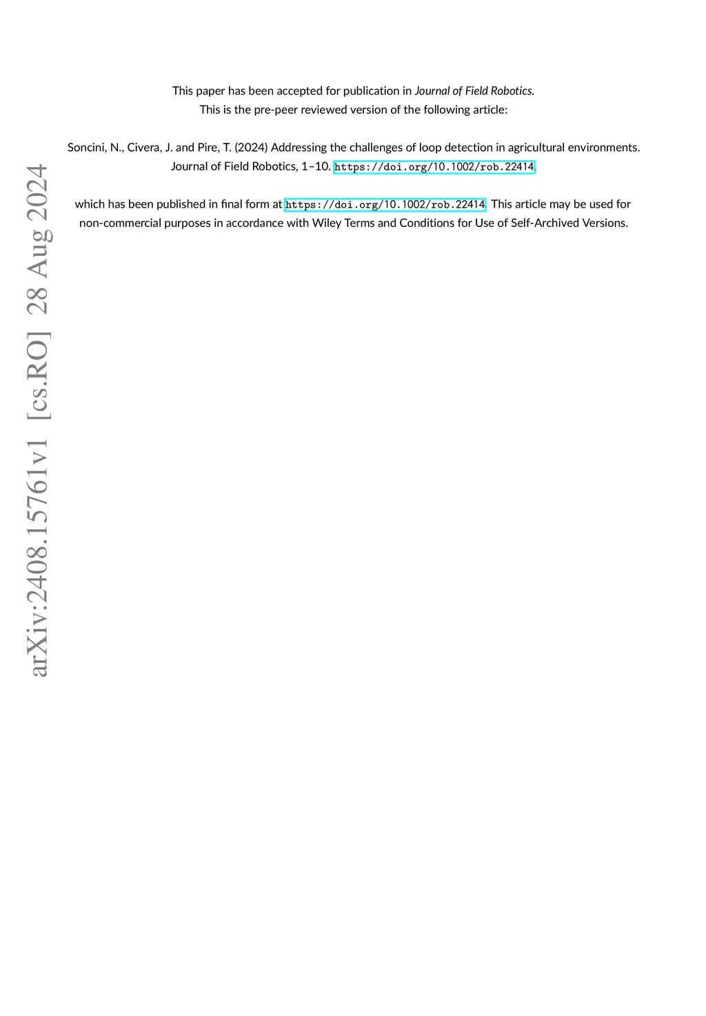 Addressing the challenges of loop detection in agricultural environments