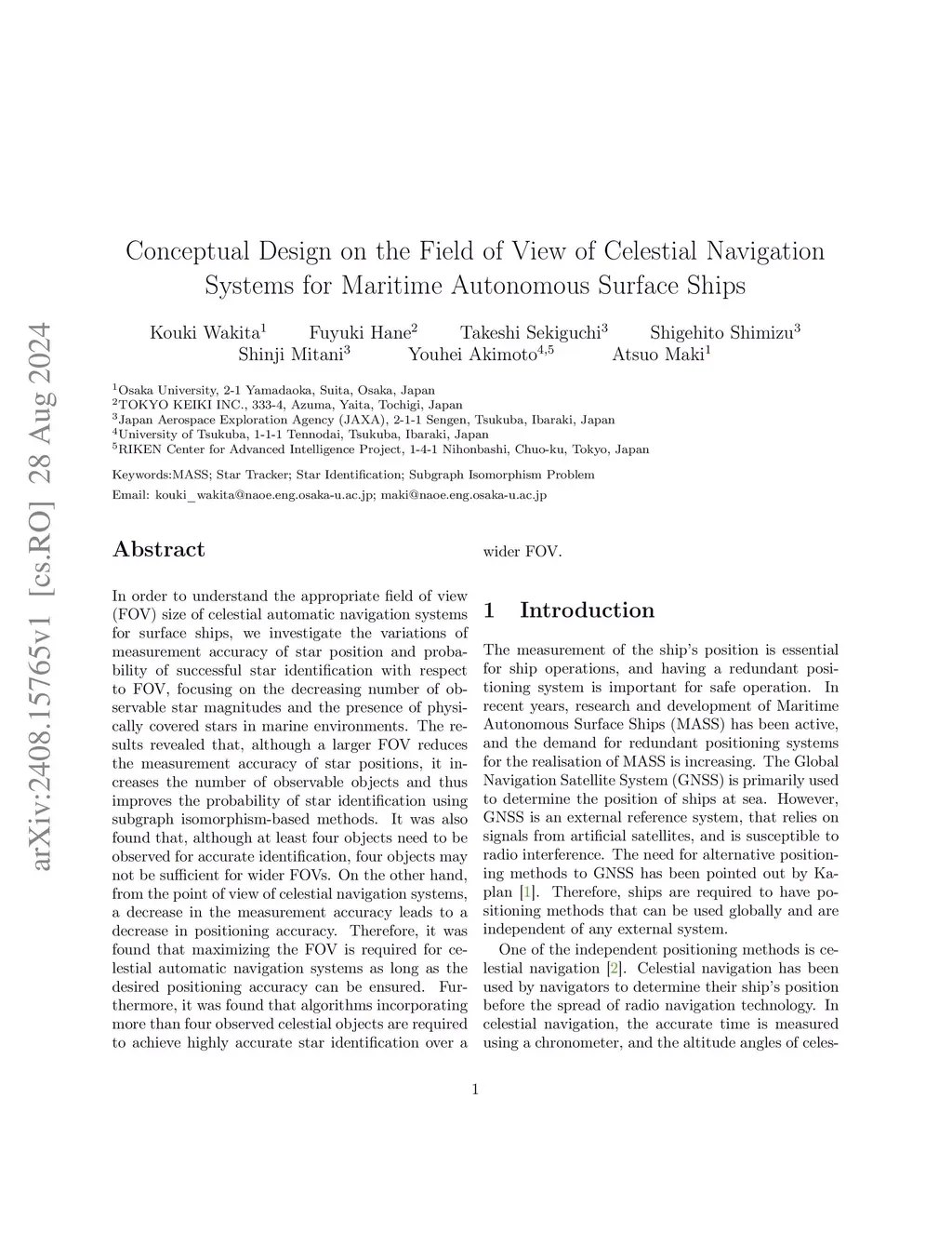 In order to understand the appropriate field of view (FOV) size of celestial automatic navigation systems for surface ships, we investigate the variations of measurement accuracy of star position and probability of successful star identification with respect to FOV, focusing on the decreasing number of observable star magnitudes and the presence of physically covered stars in marine environments. The results revealed that, although a larger FOV reduces the measurement accuracy of star positions, it increases the number of observable objects and thus improves the probability of star identification using subgraph isomorphism-based methods. It was also found that, although at least four objects need to be observed for accurate identification, four objects may not be sufficient for wider FOVs. On the other hand, from the point of view of celestial navigation systems, a decrease in the measurement accuracy leads to a decrease in positioning accuracy. Therefore, it was found that maximizing the FOV is required for celestial automatic navigation systems as long as the desired positioning accuracy can be ensured. Furthermore, it was found that algorithms incorporating more than four observed celestial objects are required to achieve highly accurate star identification over a wider FOV.