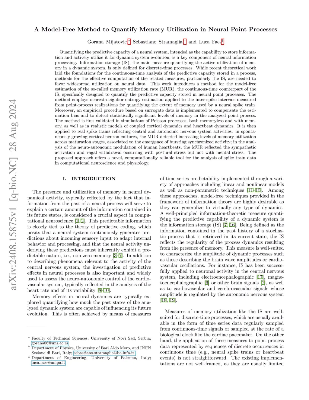 Quantifying the predictive capacity of a neural system, intended as the capability to store information and actively use it for dynamic system evolution, is a key component of neural information processing. Information storage (IS), the main measure quantifying the active utilization of memory in a dynamic system, is only defined for discrete-time processes. While recent theoretical work laid the foundations for the continuous-time analysis of the predictive capacity stored in a process, methods for the effective computation of the related measures are needed to favor widespread utilization on neural data. This work introduces a method for the model-free estimation of the so-called memory utilization rate (MUR), the continuous-time counterpart of the IS, specifically designed to quantify the predictive capacity stored in neural point processes. The method employs nearest-neighbor entropy estimation applied to the inter-spike intervals measured from point-process realizations to quantify the extent of memory used by a spike train. An empirical procedure based on surrogate data is implemented to compensate the estimation bias and detect statistically significant levels of memory. The method is validated in simulated Poisson processes and in realistic models of coupled cortical dynamics and heartbeat dynamics. It is then applied to real spike trains reflecting central and autonomic nervous system activities: in spontaneously growing cortical neuron cultures, the MUR detected increasing memory utilization across maturation stages, associated to emergent bursting synchronized activity; in the study of the neuro-autonomic modulation of human heartbeats, the MUR reflected the sympathetic activation occurring with postural but not with mental stress. The proposed approach offers a computationally reliable tool to analyze spike train data in computational neuroscience and physiology.