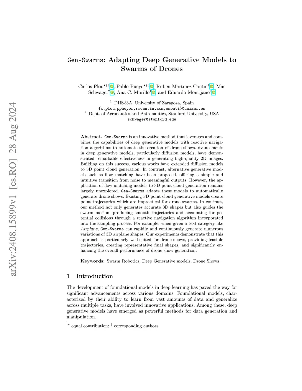 Gen-Swarms: Adapting Deep Generative Models to Swarms of Drones