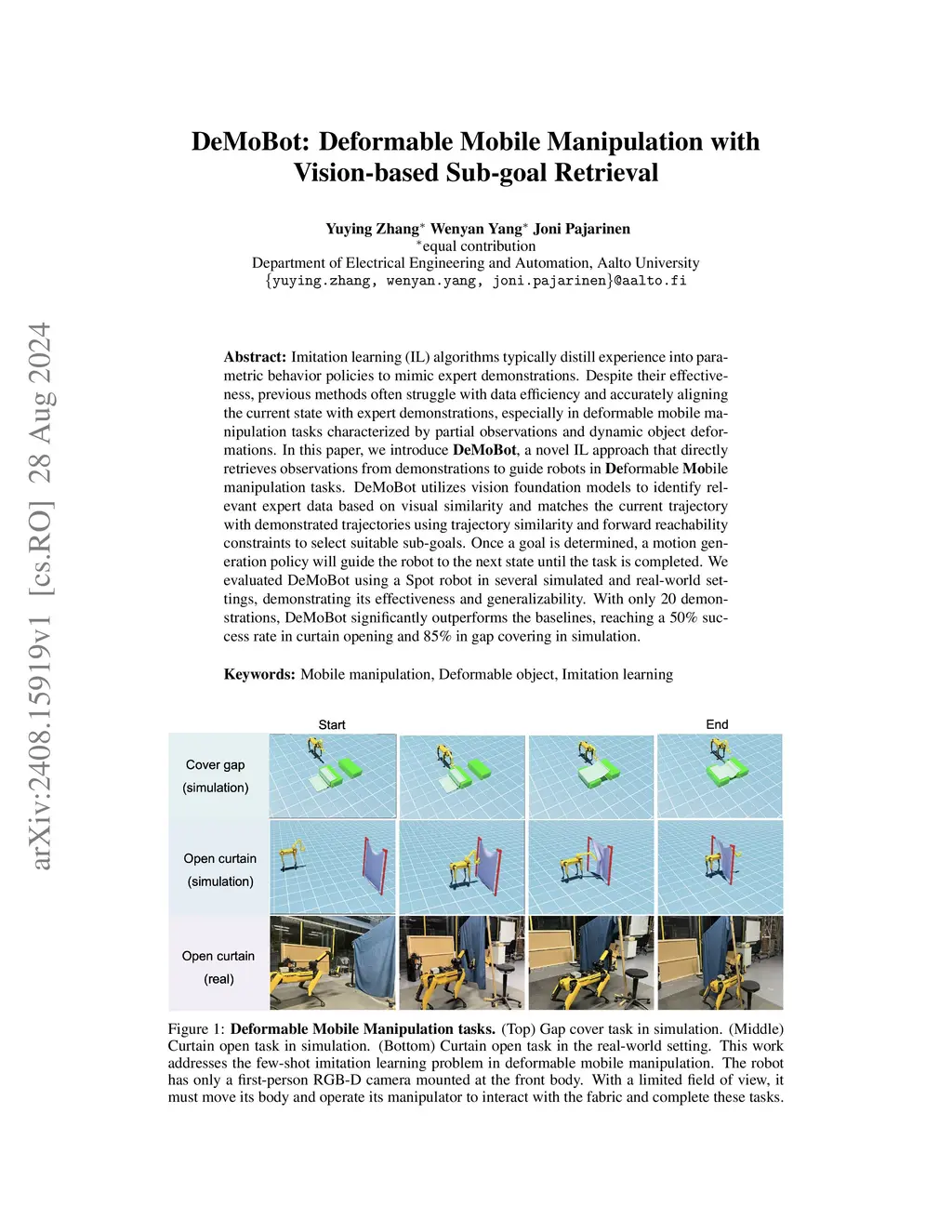 Imitation learning (IL) algorithms typically distill experience into parametric behavior policies to mimic expert demonstrations. However, with limited demonstrations, existing methods often struggle to generate accurate actions, particularly under partial observability. To address this problem, we introduce a few-shot IL approach, ReMoBot, which directly retrieves information from demonstrations to solve Mobile manipulation tasks with ego-centric visual observations. Given the current observation, ReMoBot utilizes vision foundation models to identify relevant demonstrations, considering visual similarity w.r.t. both individual observations and history trajectories. A motion selection policy then selects the proper command for the robot until the task is successfully completed.The performance of ReMoBot is evaluated on three mobile manipulation tasks with a Boston Dynamics Spot robot in both simulation and the real world. After benchmarking five approaches in simulation, we compare our method with two baselines in the real world, training directly on the real-world dataset without sim-to-real transfer. With only 20 demonstrations, ReMoBot outperforms the baselines, achieving high success rates in Table Uncover (70%) and Gap Cover (80%), while also showing promising performance on the more challenging Curtain Open task in the real-world setting. Furthermore, ReMoBot demonstrates generalization across varying robot positions, object sizes, and material types. Additional details are available at:this https URL
