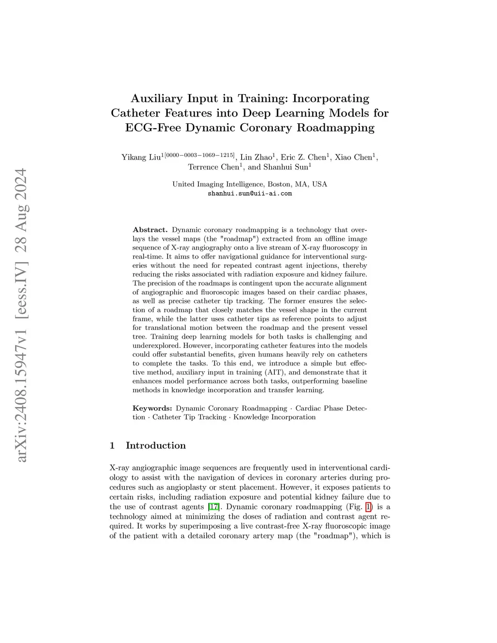 Auxiliary Input in Training: Incorporating Catheter Features into Deep