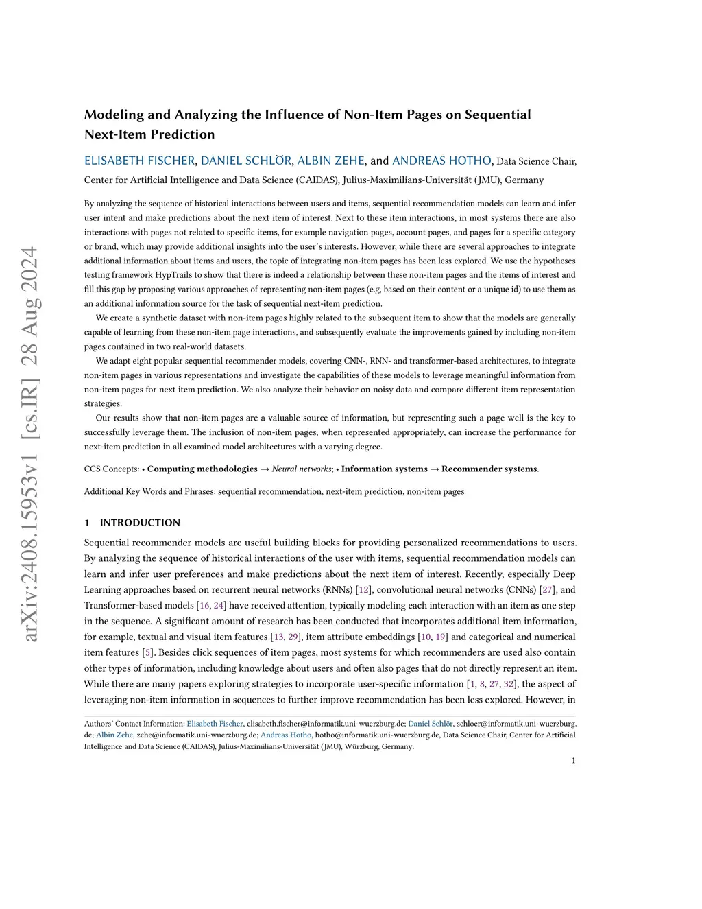 Modeling and Analyzing the Influence of Non-Item Pages on Sequential Next-Item Prediction