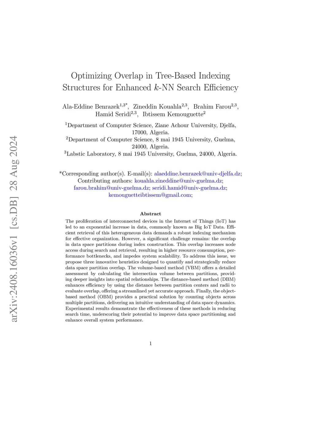 Efficient -NN Search in IoT Data: Overlap Optimization in Tree-Based