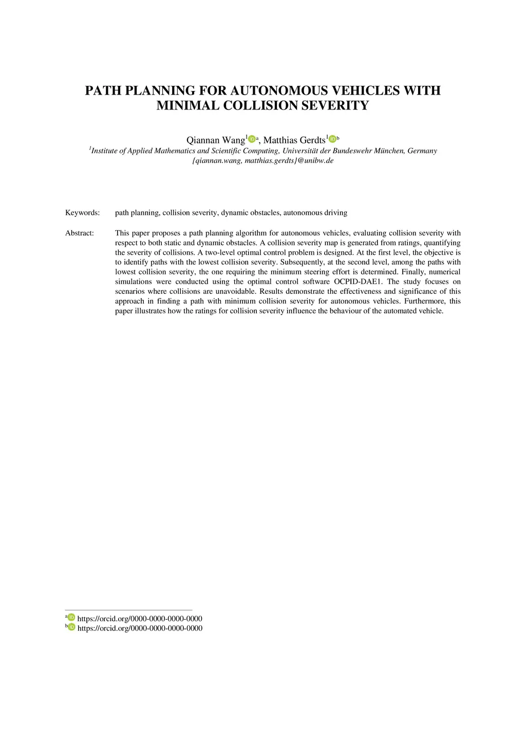 This paper proposes a path planning algorithm for autonomous vehicles, evaluating collision severity with respect to both static and dynamic obstacles. A collision severity map is generated from ratings, quantifying the severity of collisions. A two-level optimal control problem is designed. At the first level, the objective is to identify paths with the lowest collision severity. Subsequently, at the second level, among the paths with lowest collision severity, the one requiring the minimum steering effort is determined. Finally, numerical simulations were conducted using the optimal control software OCPID-DAE1. The study focuses on scenarios where collisions are unavoidable. Results demonstrate the effectiveness and significance of this approach in finding a path with minimum collision severity for autonomous vehicles. Furthermore, this paper illustrates how the ratings for collision severity influence the behaviour of the automated vehicle.