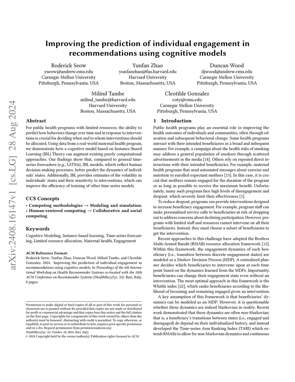 Improving the Prediction of Individual Engagement in Recommendations Using Cognitive Models