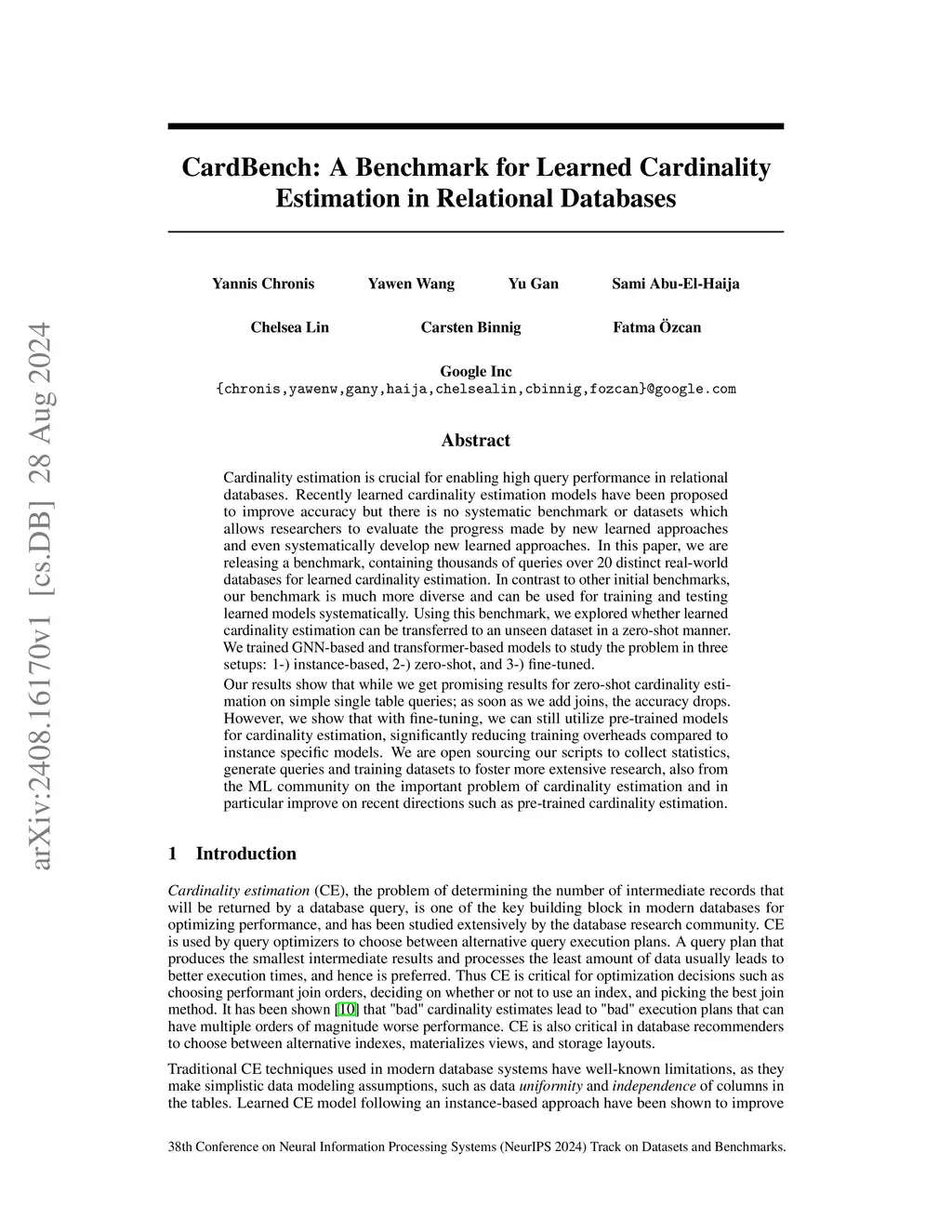 Cardinality estimation is crucial for enabling high query performance in relational databases. Recently learned cardinality estimation models have been proposed to improve accuracy but there is no systematic benchmark or datasets which allows researchers to evaluate the progress made by new learned approaches and even systematically develop new learned approaches. In this paper, we are releasing a benchmark, containing thousands of queries over 20 distinct real-world databases for learned cardinality estimation. In contrast to other initial benchmarks, our benchmark is much more diverse and can be used for training and testing learned models systematically. Using this benchmark, we explored whether learned cardinality estimation can be transferred to an unseen dataset in a zero-shot manner. We trained GNN-based and transformer-based models to study the problem in three setups: 1-) instance-based, 2-) zero-shot, and 3-) fine-tuned. Our results show that while we get promising results for zero-shot cardinality estimation on simple single table queries; as soon as we add joins, the accuracy drops. However, we show that with fine-tuning, we can still utilize pre-trained models for cardinality estimation, significantly reducing training overheads compared to instance specific models. We are open sourcing our scripts to collect statistics, generate queries and training datasets to foster more extensive research, also from the ML community on the important problem of cardinality estimation and in particular improve on recent directions such as pre-trained cardinality estimation.