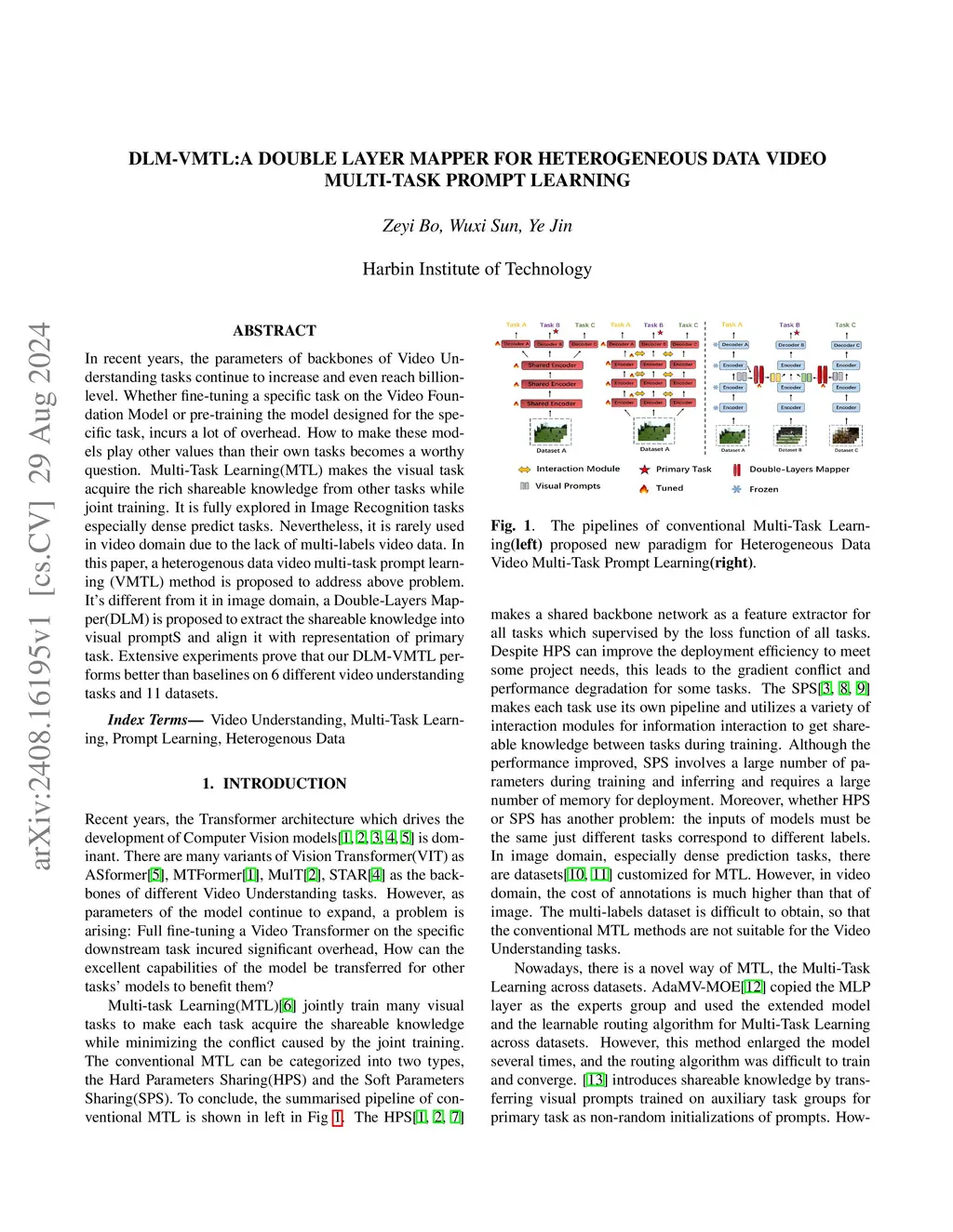 DLM-VMTL:A Double Layer Mapper for heterogeneous data video Multi-task