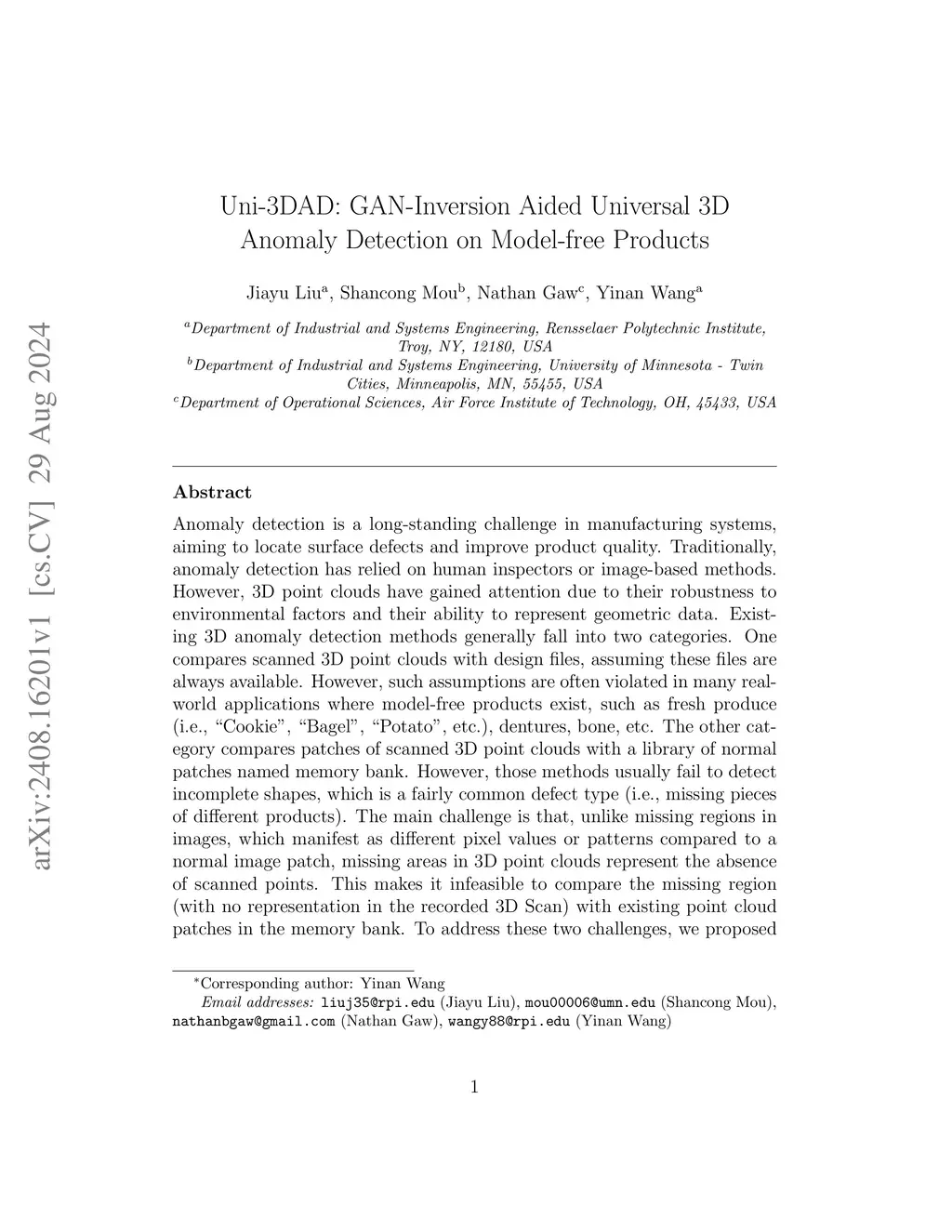 Uni-3DAD: GAN-Inversion Aided Universal 3D Anomaly Detection on