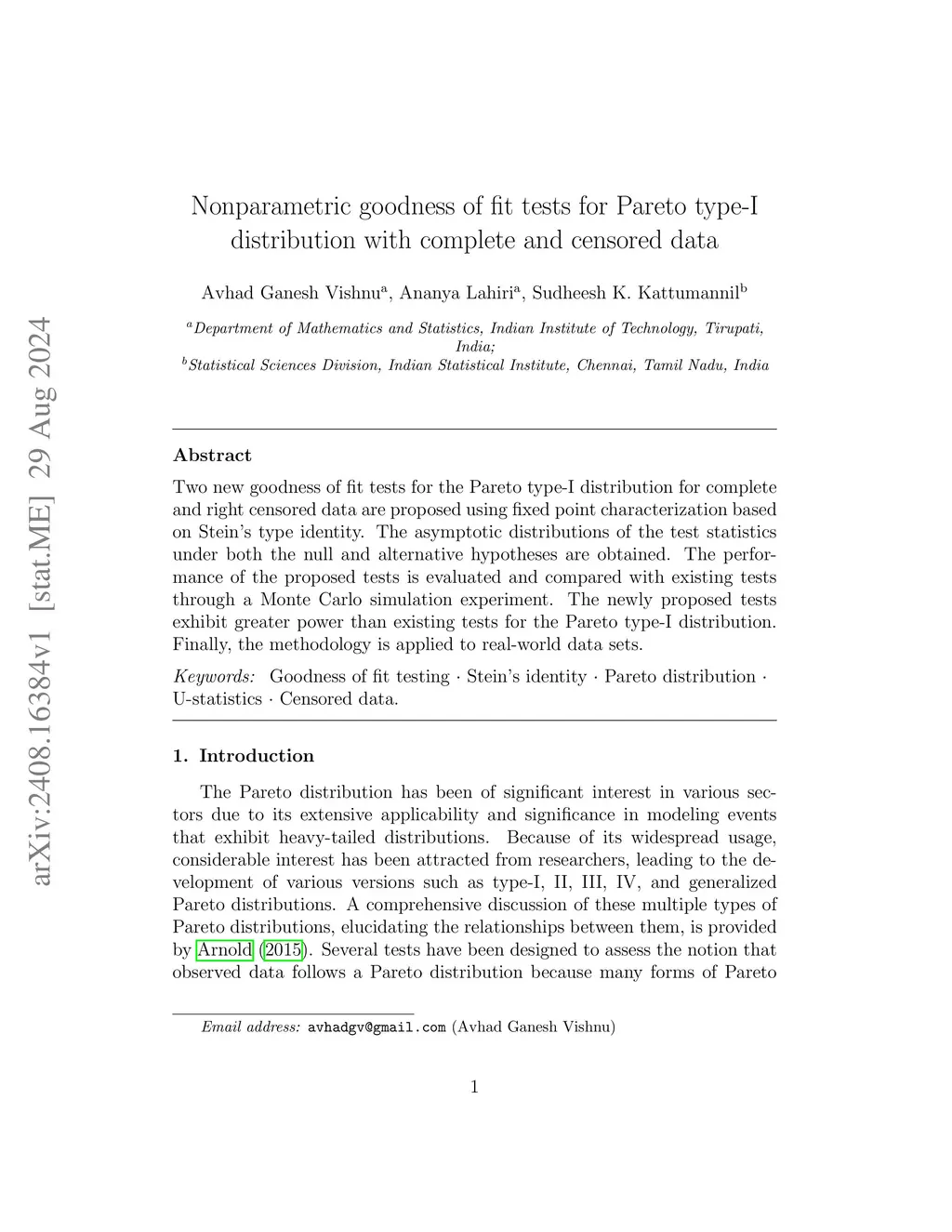 Two new goodness of fit tests for the Pareto type-I distribution for complete and right censored data are proposed using fixed point characterization based on Steins type identity. The asymptotic distributions of the test statistics under both the null and alternative hypotheses are obtained. The performance of the proposed tests is evaluated and compared with existing tests through a Monte Carlo simulation experiment. The newly proposed tests exhibit greater power than existing tests for the Pareto type-I distribution. Finally, the methodology is applied to real-world data sets.