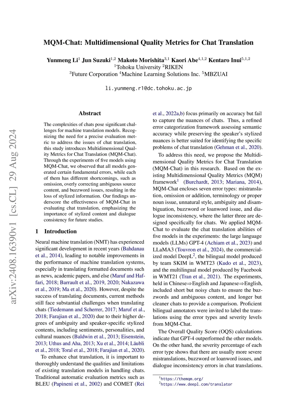 MQM-Chat: Multidimensional Quality Metrics for Chat Translation