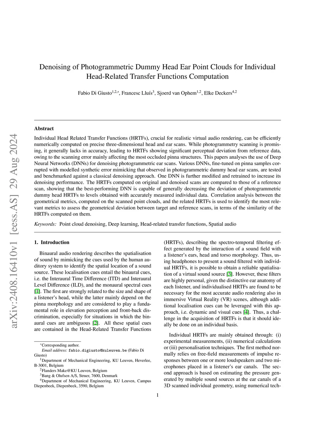 Denoising of Photogrammetric Dummy Head Ear Point Clouds for Individual