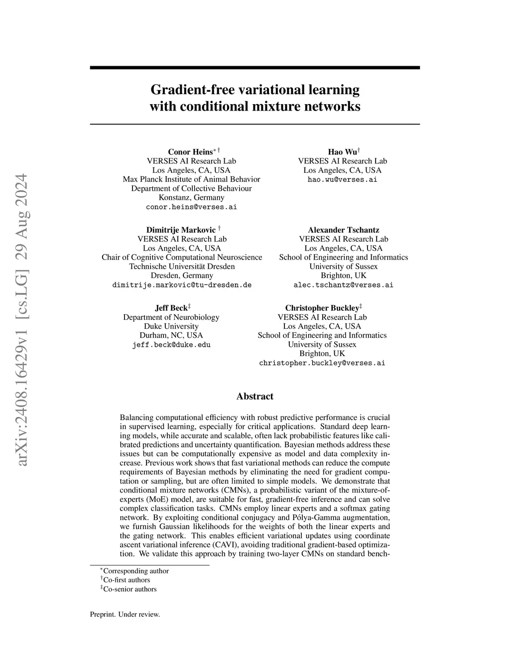 Gradient-free variational learning with conditional mixture networks