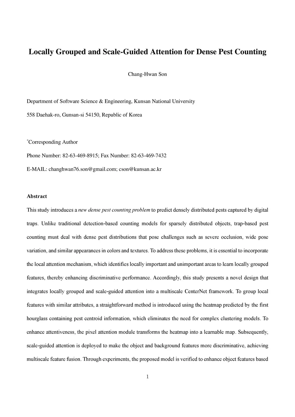 Locally Grouped and Scale-Guided Attention for Dense Pest Counting