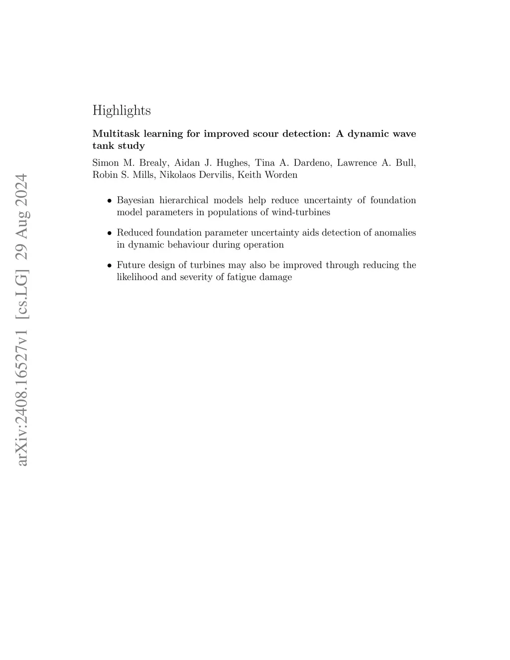 Population-based structural health monitoring (PBSHM), aims to share information between members of a population. An offshore wind (OW) farm could be considered as a population of nominally-identical wind-turbine structures. However, benign variations exist among members, such as geometry, sea-bed conditions and temperature differences. These factors could influence structural properties and therefore the dynamic response, making it more difficult to detect structural problems via traditional SHM techniques. This paper explores the use of a Bayesian hierarchical model as a means of multitask learning, to infer foundation stiffness distribution parameters at both population and local levels. To do this, observations of natural frequency from populations of structures were first generated from both numerical and experimental models. These observations were then used in a partially-pooled Bayesian hierarchical model in tandem with surrogate FE models of the structures to infer foundation stiffness parameters. Finally, it is demonstrated how the learned parameters may be used as a basis to perform more robust anomaly detection (as compared to a no-pooling approach) e.g. as a result of scour.