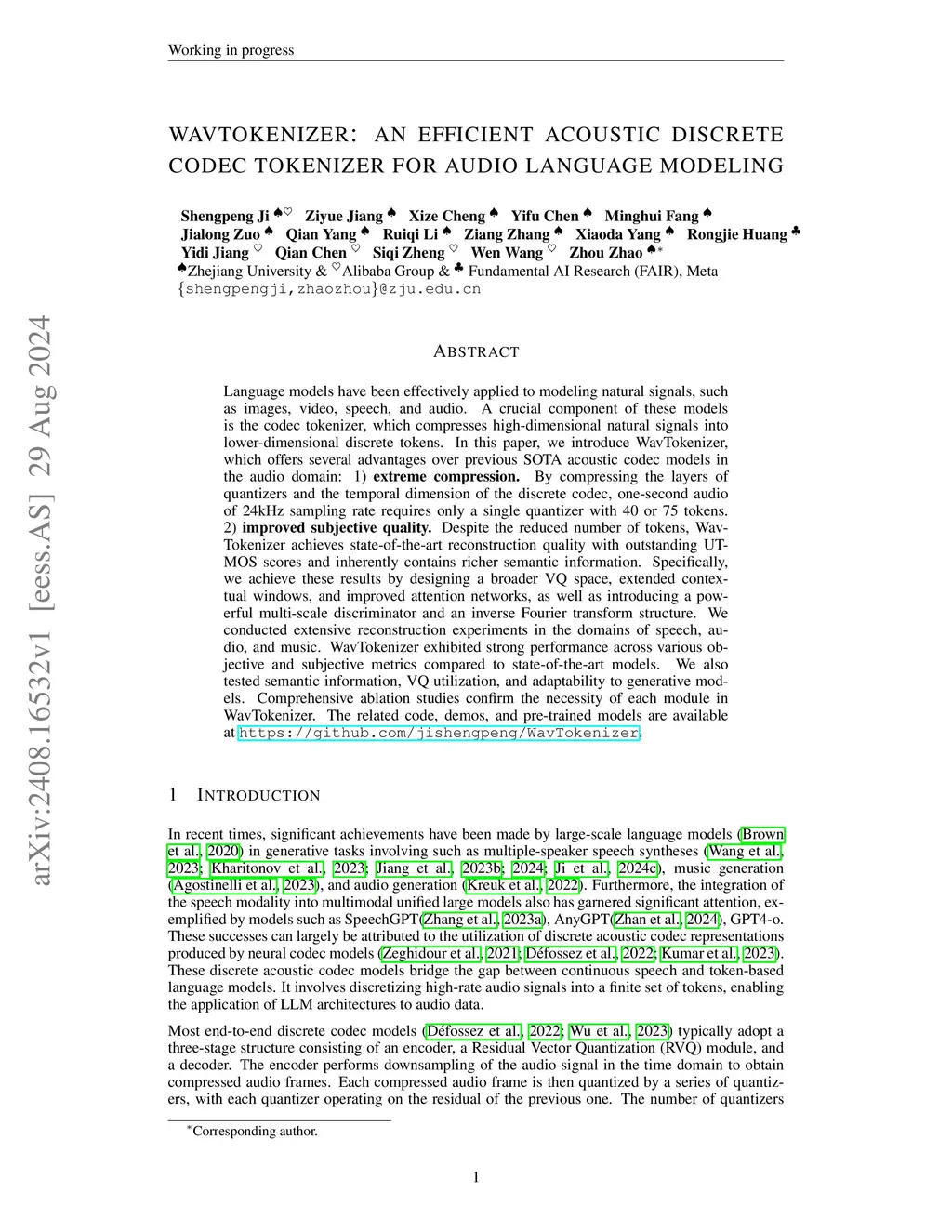 WavTokenizer: an Efficient Acoustic Discrete Codec Tokenizer for Audio Language Modeling