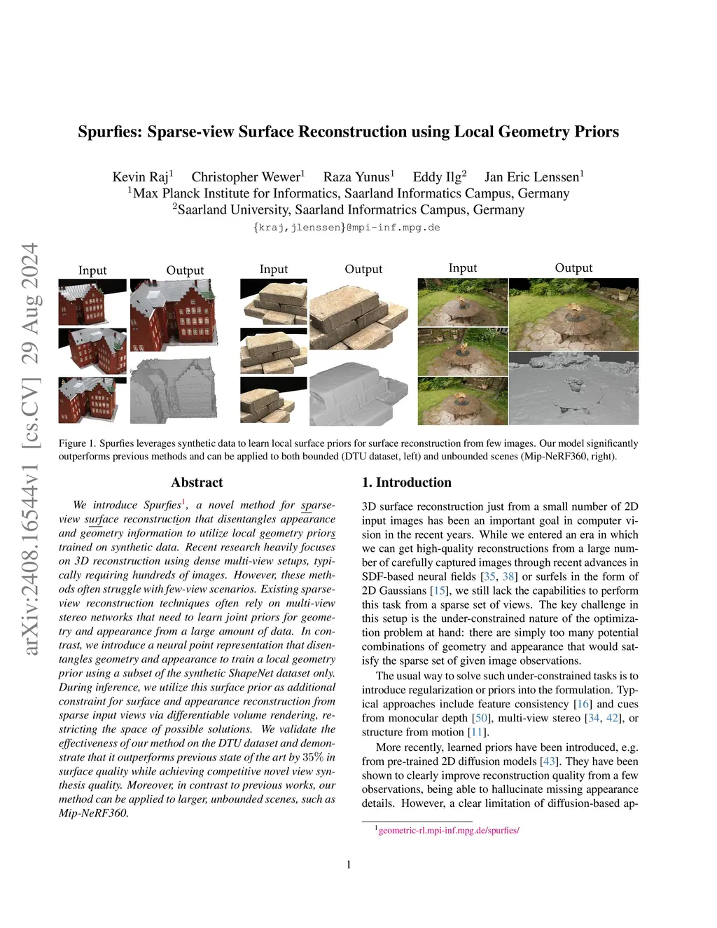Spurfies: Sparse Surface Reconstruction using Local Geometry Priors