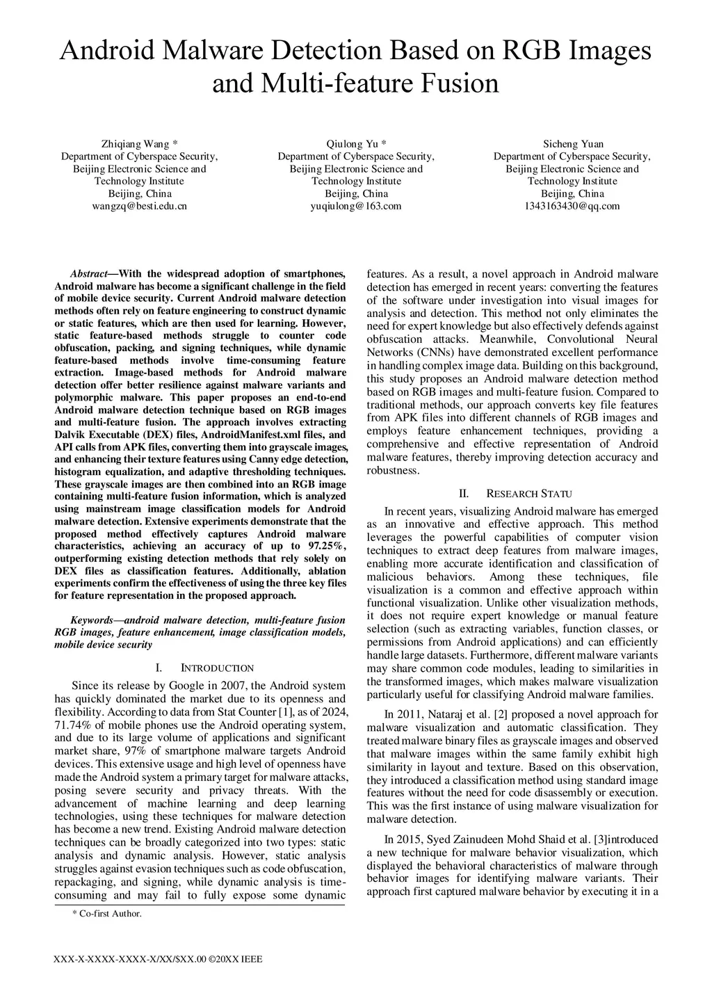 Android Malware Detection Based on RGB Images and Multi-feature Fusion