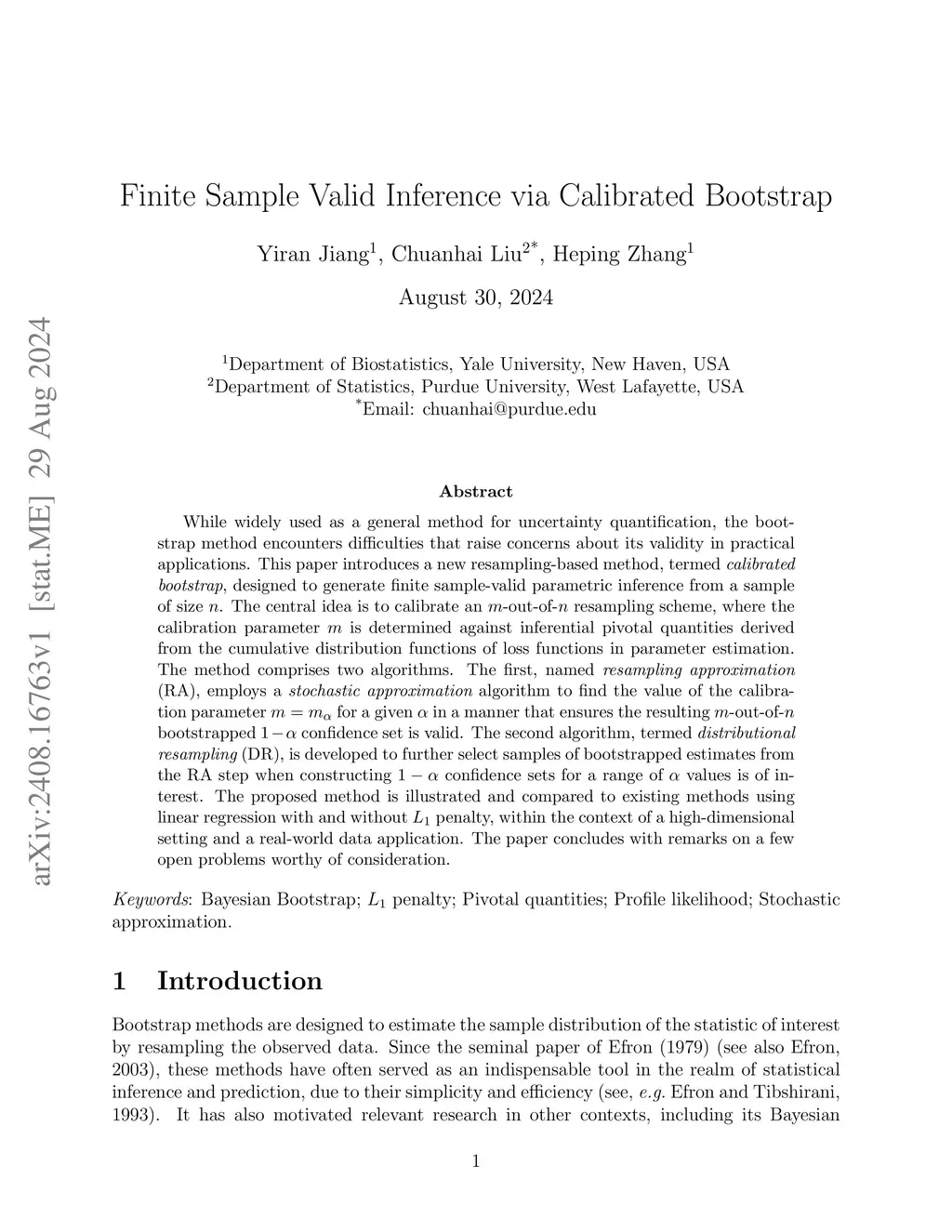 While widely used as a general method for uncertainty quantification, the bootstrap method encounters difficulties that raise concerns about its validity in practical applications. This paper introduces a new resampling-based method, termed , designed to generate finite sample-valid parametric inference from a sample of size . The central idea is to calibrate an -out-of- resampling scheme, where the calibration parameter is determined against inferential pivotal quantities derived from the cumulative distribution functions of loss functions in parameter estimation. The method comprises two algorithms. The first, named (RA), employs a algorithm to find the value of the calibration parameter for a given in a manner that ensures the resulting -out-of- bootstrapped confidence set is valid. The second algorithm, termed (DR), is developed to further select samples of bootstrapped estimates from the RA step when constructing confidence sets for a range of values is of interest. The proposed method is illustrated and compared to existing methods using linear regression with and without penalty, within the context of a high-dimensional setting and a real-world data application. The paper concludes with remarks on a few open problems worthy of consideration.