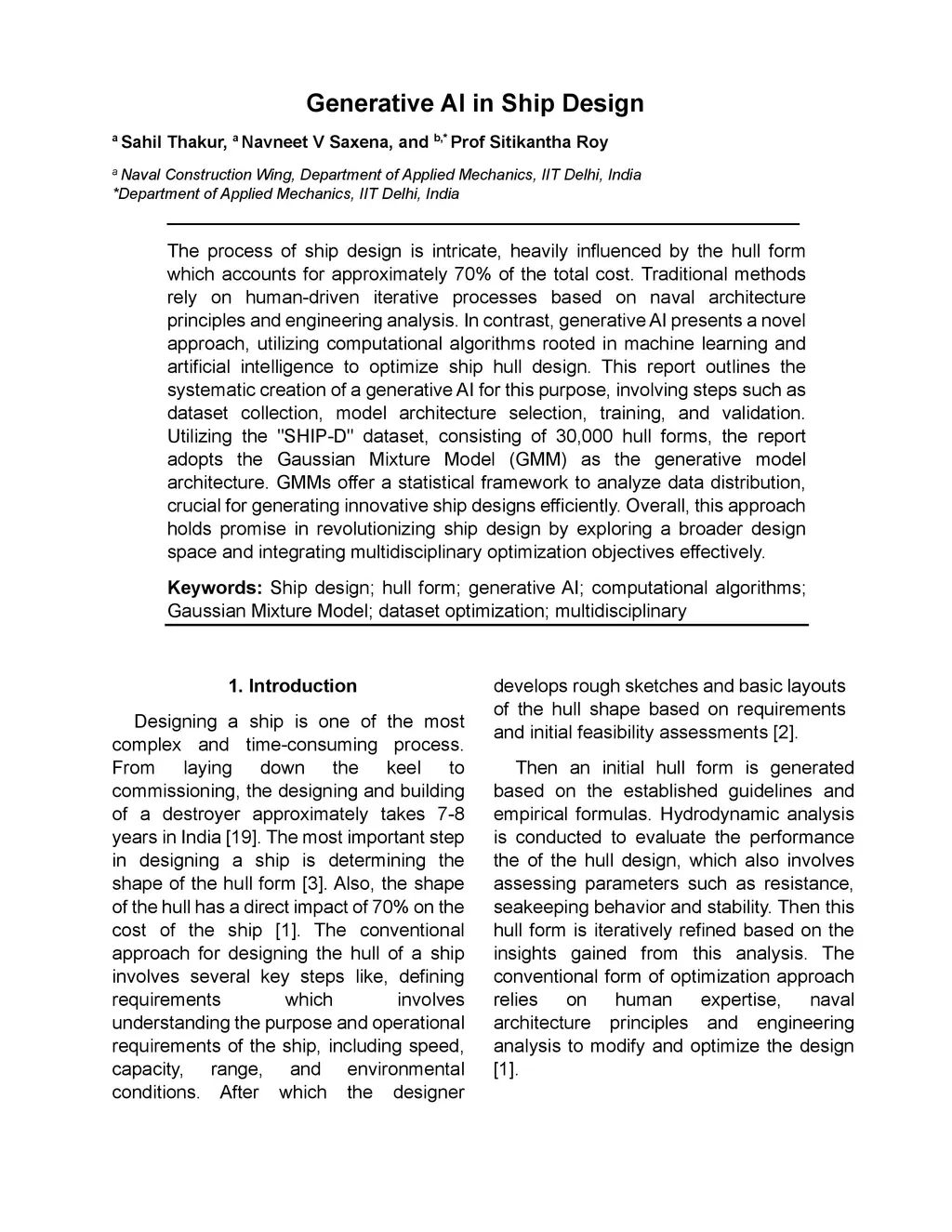The process of ship design is intricate, heavily influenced by the hull form which accounts for approximately 70% of the total cost. Traditional methods rely on human-driven iterative processes based on naval architecture principles and engineering analysis. In contrast, generative AI presents a novel approach, utilizing computational algorithms rooted in machine learning and artificial intelligence to optimize ship hull design. This report outlines the systematic creation of a generative AI for this purpose, involving steps such as dataset collection, model architecture selection, training, and validation. Utilizing the "SHIP-D" dataset, consisting of 30,000 hull forms, the report adopts the Gaussian Mixture Model (GMM) as the generative model architecture. GMMs offer a statistical framework to analyze data distribution, crucial for generating innovative ship designs efficiently. Overall, this approach holds promise in revolutionizing ship design by exploring a broader design space and integrating multidisciplinary optimization objectives effectively.
