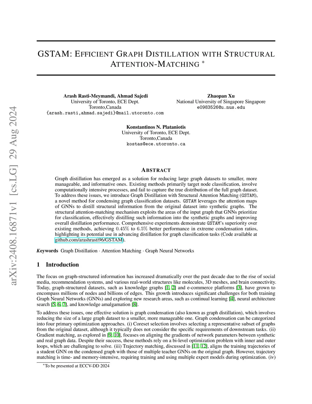 GSTAM: Efficient Graph Distillation with Structural Attention-Matching