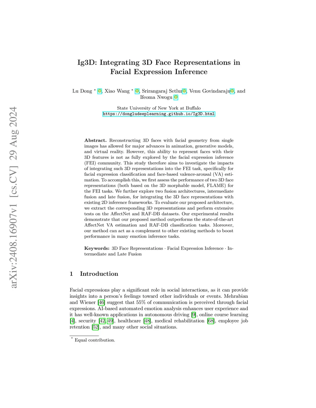 Ig3D: Integrating 3D Face Representations in Facial Expression Inference