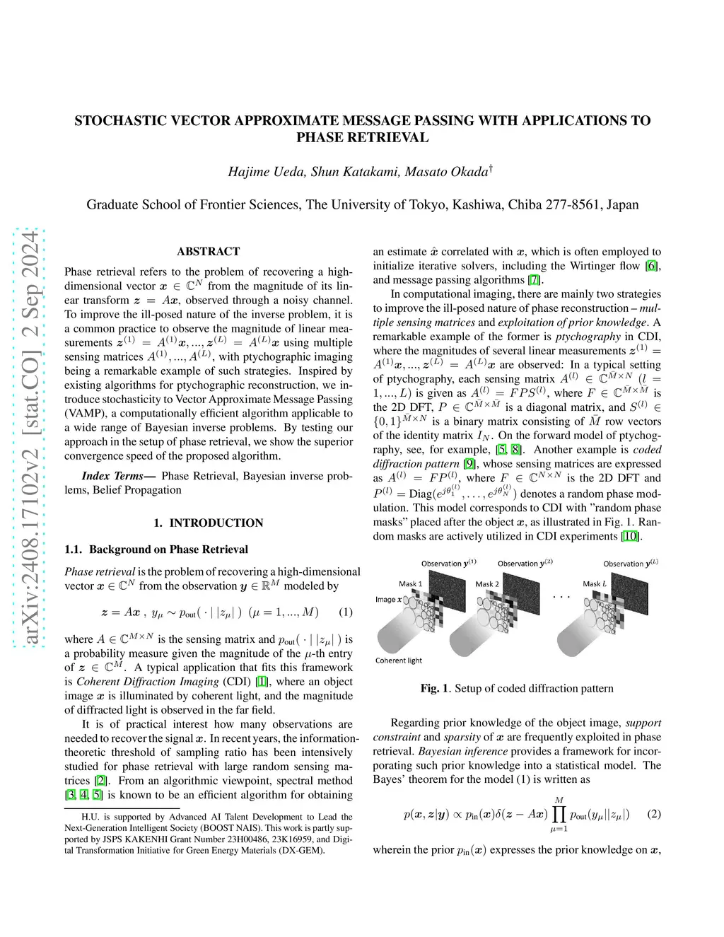 Phase retrieval refers to the problem of recovering a high-dimensional vector from the magnitude of its linear transform , observed through a noisy channel. To improve the ill-posed nature of the inverse problem, it is a common practice to observe the magnitude of linear measurements using multiple sensing matrices , with ptychographic imaging being a remarkable example of such strategies. Inspired by existing algorithms for ptychographic reconstruction, we introduce stochasticity to Vector Approximate Message Passing (VAMP), a computationally efficient algorithm applicable to a wide range of Bayesian inverse problems. By testing our approach in the setup of phase retrieval, we show the superior convergence speed of the proposed algorithm.