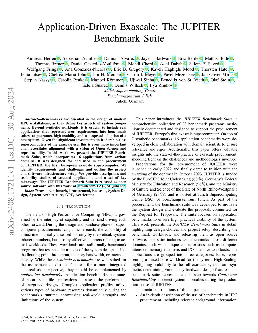 Application-Driven Exascale: The JUPITER Benchmark Suite