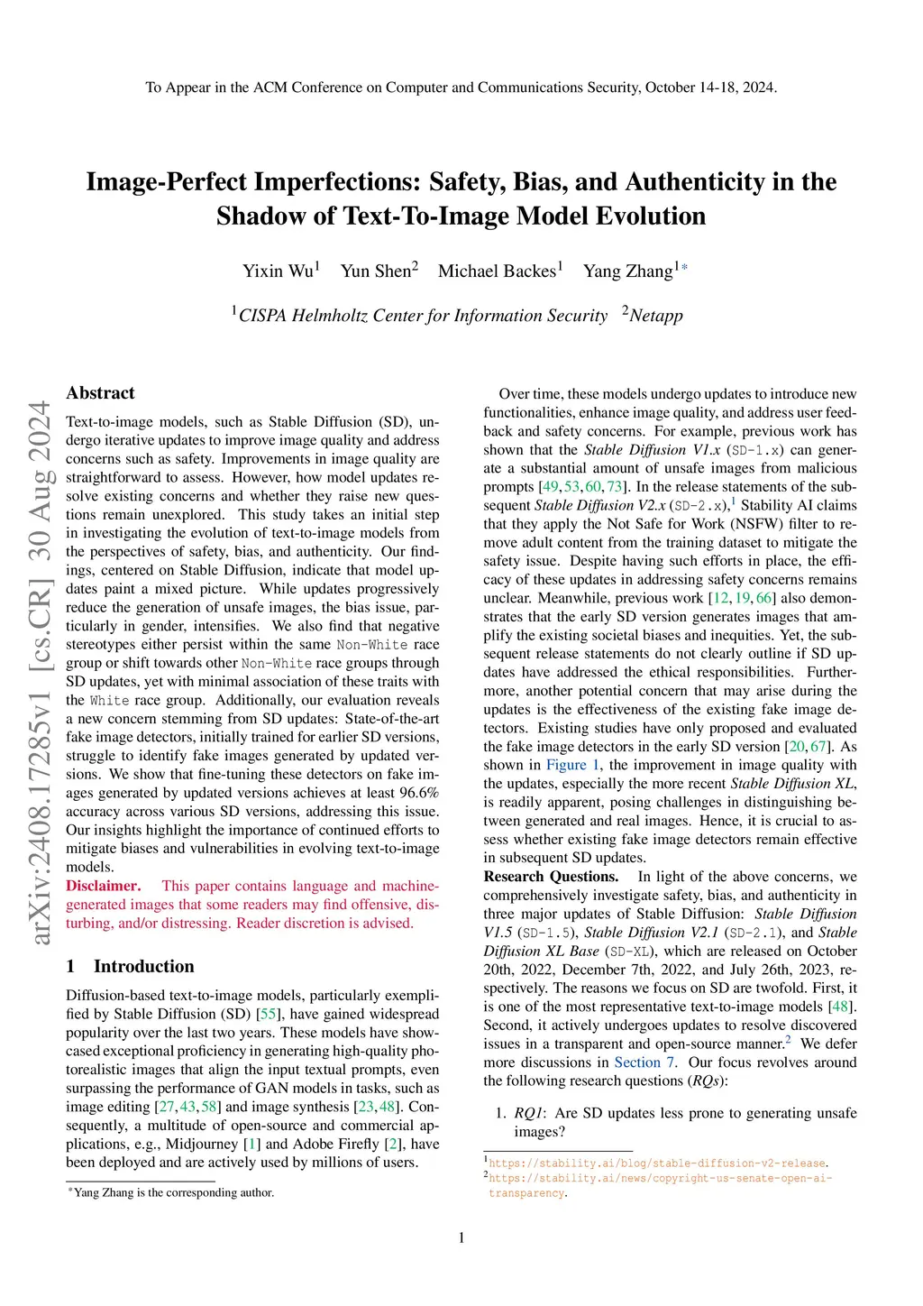 Image-Perfect Imperfections: Safety, Bias, and Authenticity in the