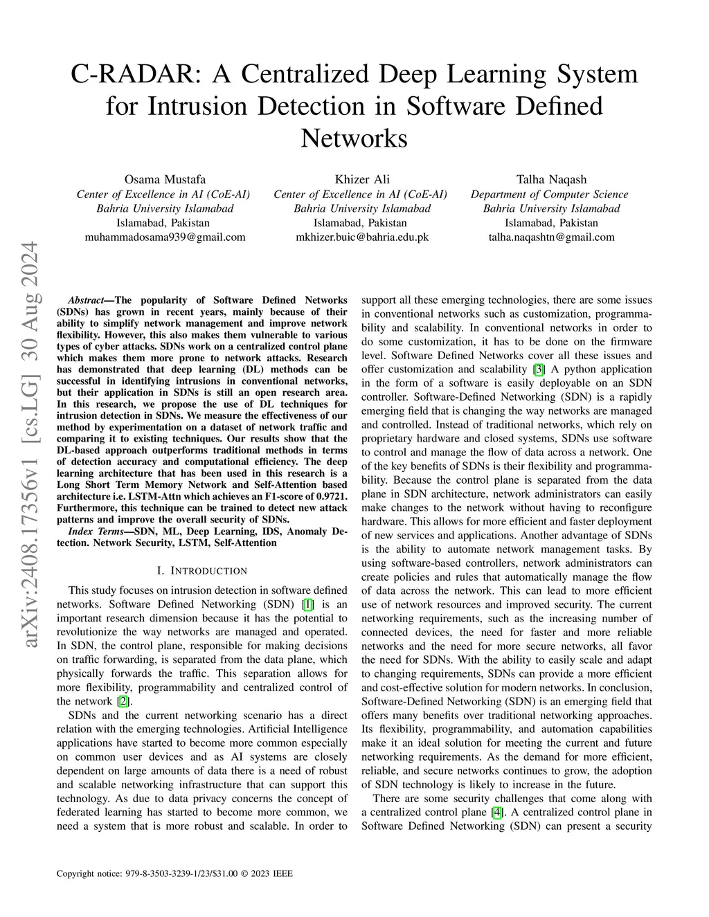 C-RADAR: A Centralized Deep Learning System for Intrusion Detection in