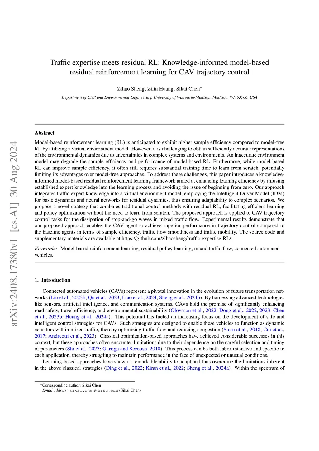 Traffic expertise meets residual RL: Knowledge-informed model-based residual reinforcement learning for CAV trajectory control