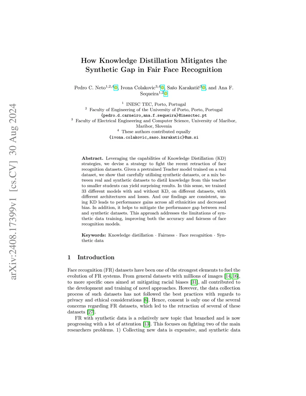 Leveraging the capabilities of Knowledge Distillation (KD) strategies, we devise a strategy to fight the recent retraction of face recognition datasets. Given a pretrained Teacher model trained on a real dataset, we show that carefully utilising synthetic datasets, or a mix between real and synthetic datasets to distil knowledge from this teacher to smaller students can yield surprising results. In this sense, we trained 33 different models with and without KD, on different datasets, with different architectures and losses. And our findings are consistent, using KD leads to performance gains across all ethnicities and decreased bias. In addition, it helps to mitigate the performance gap between real and synthetic datasets. This approach addresses the limitations of synthetic data training, improving both the accuracy and fairness of face recognition models.