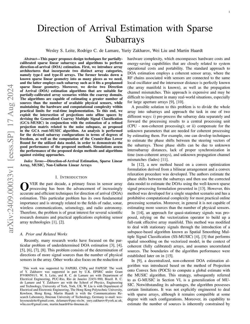 Direction of Arrival Estimation with Sparse Subarrays