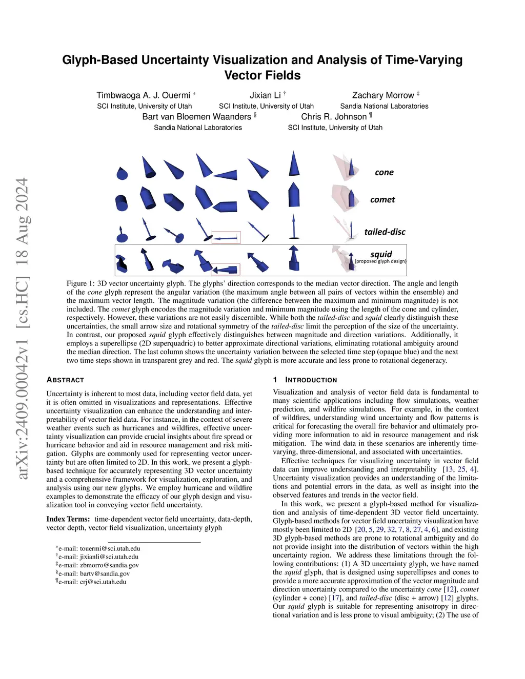 Glyph-Based Uncertainty Visualization and Analysis of Time-Varying