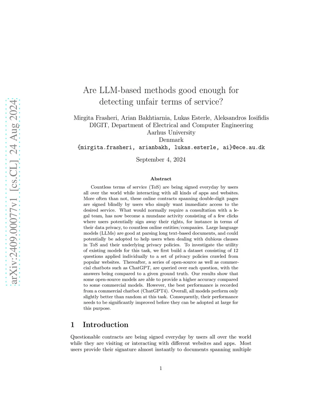Are LLM-based methods good enough for detecting unfair terms of service?