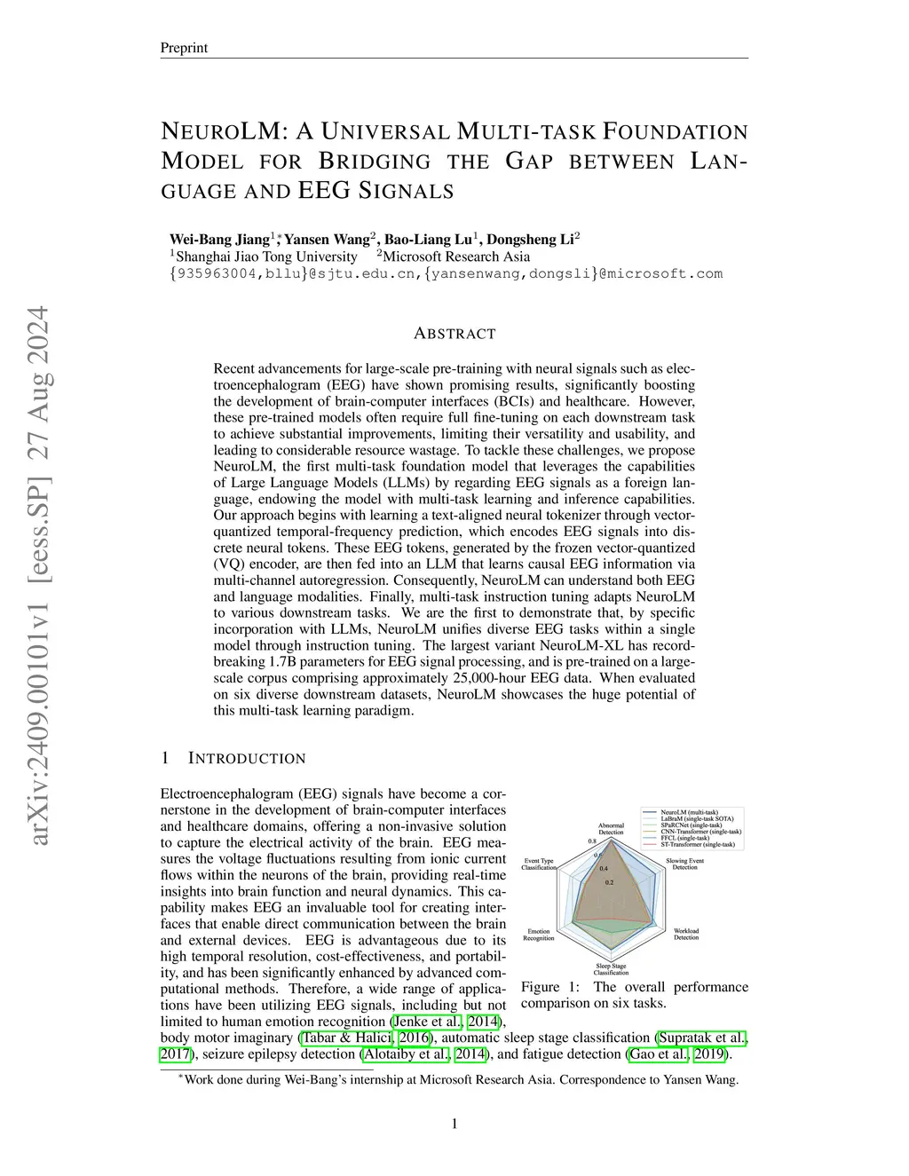 NeuroLM: A Universal Multi-task Foundation Model for Bridging the Gap between Language and EEG Signals